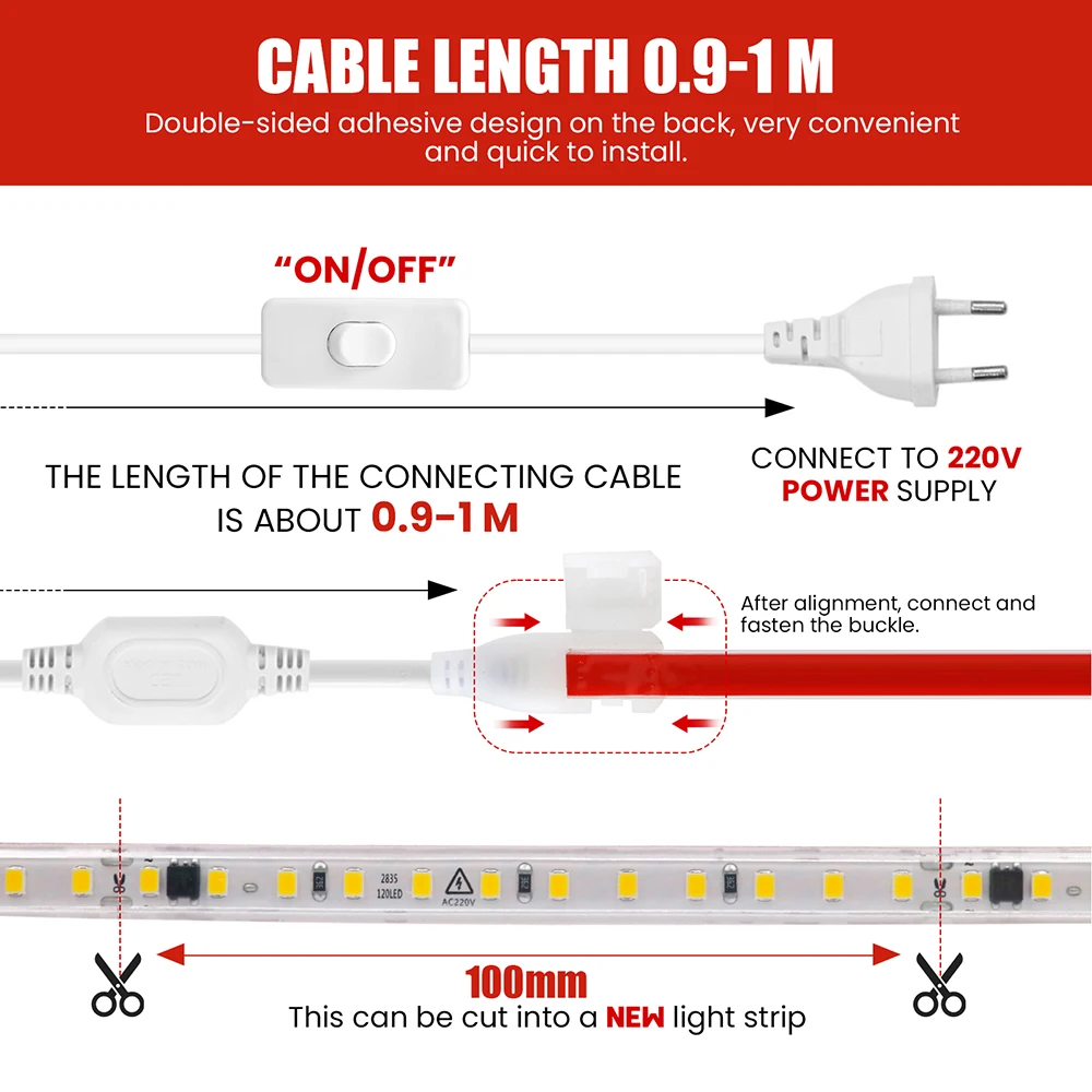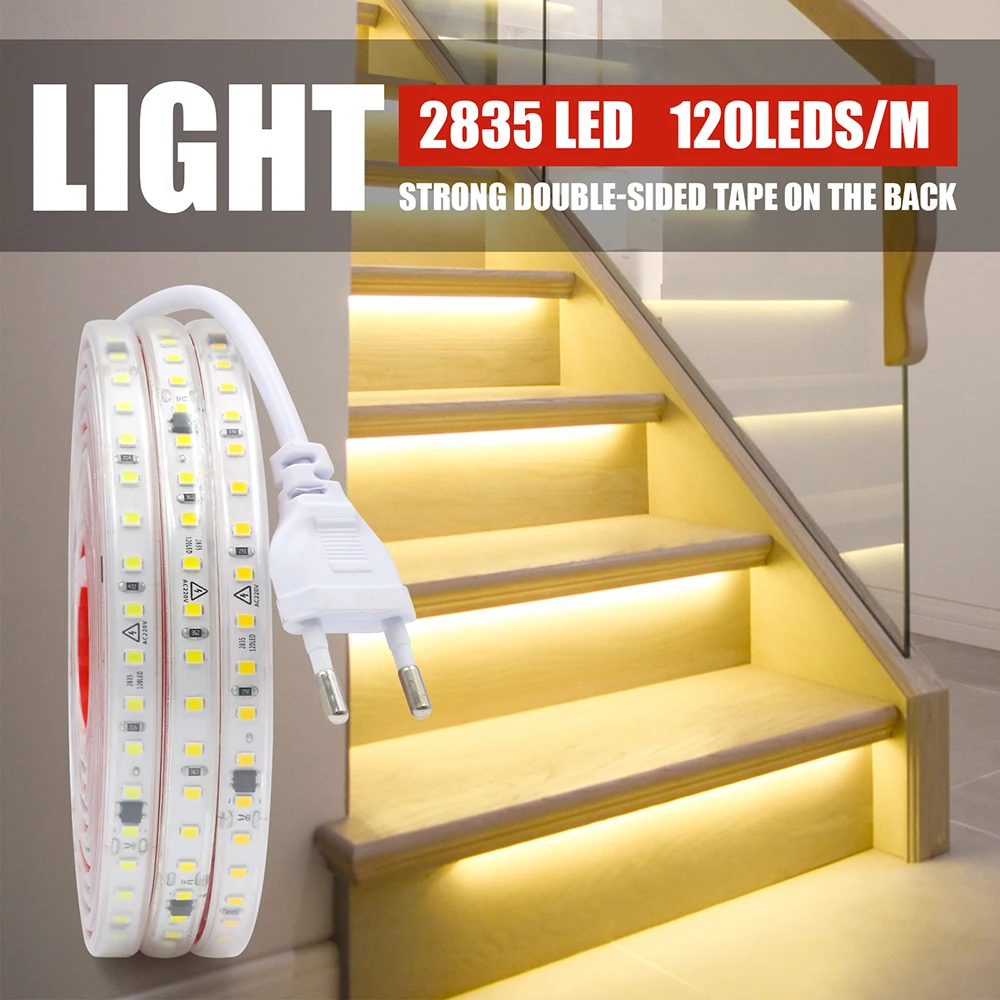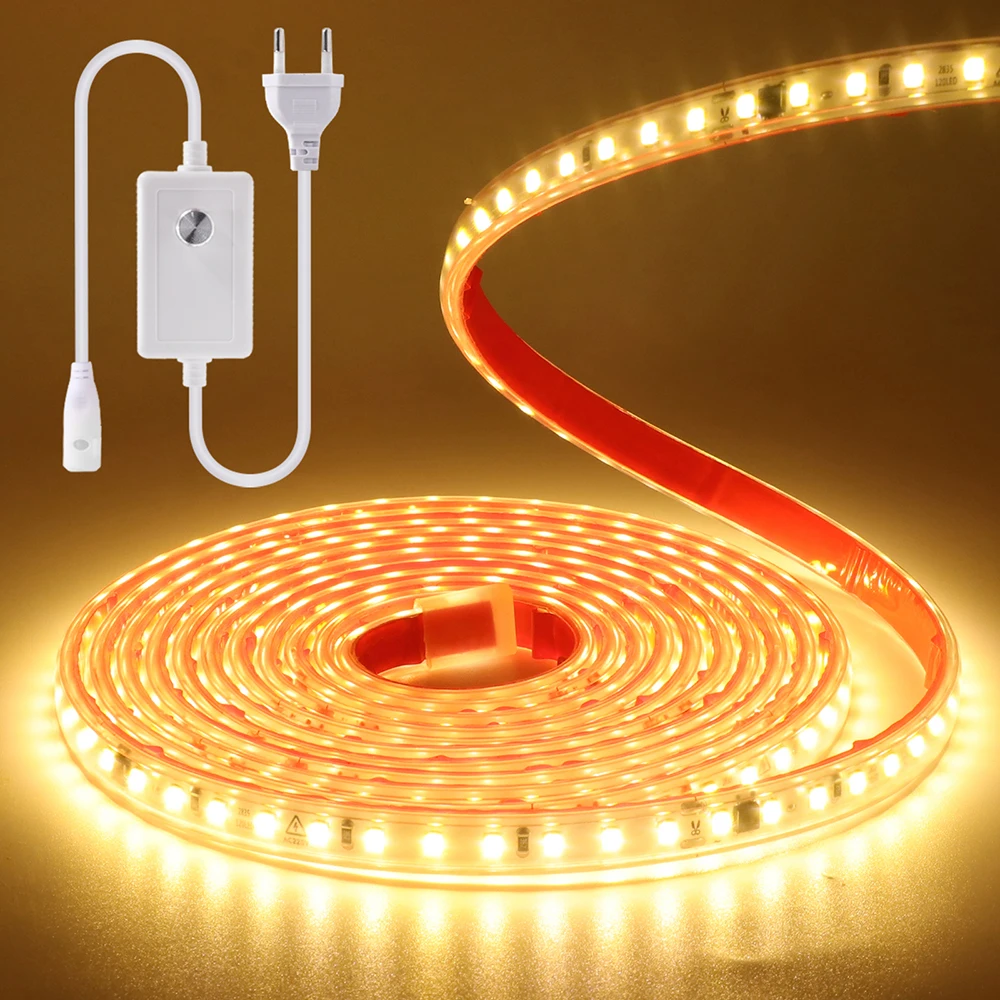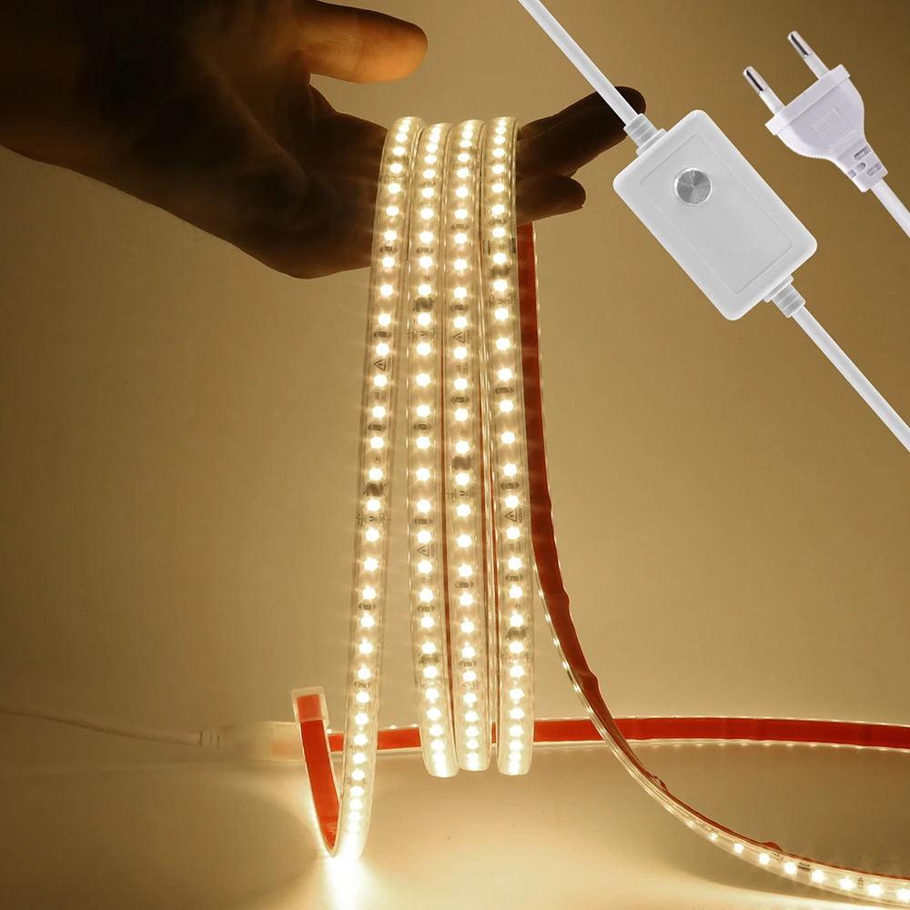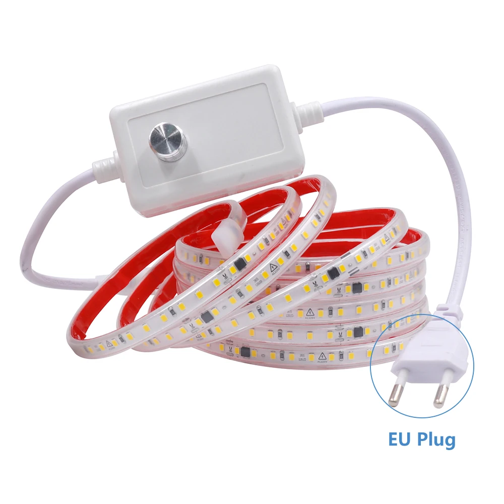 Dimmable LED Strip Light 220V Switch EU Power Dimmer Kit Waterproof 2835 120LEDs/M High Bright Flex Tape Home Decor 0.5M 10M 20M