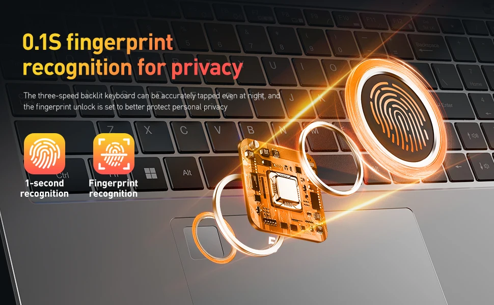 • Fingerprint Recognition :Securely log in to your laptop with just your fingerprint, eliminating the need for passwords and PINs.