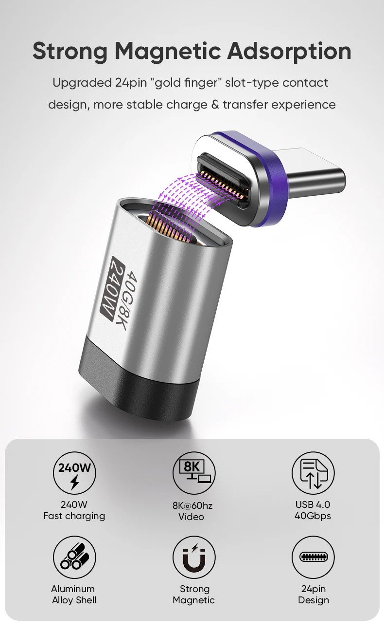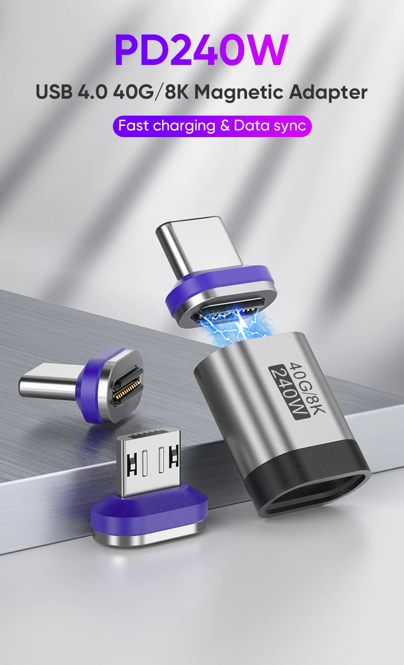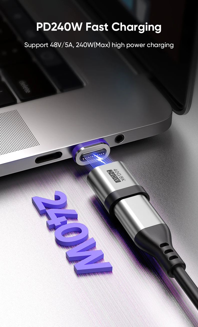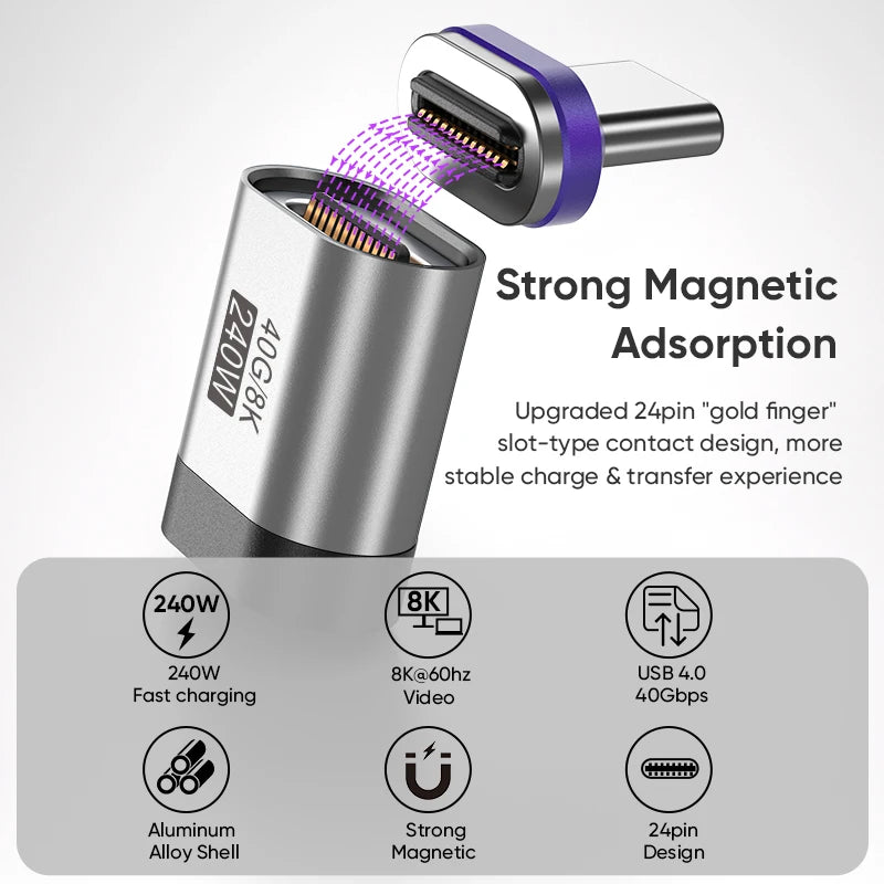 AUFU 240W Magnetic Adapter 24Pin USB4.0 Thunderbolt3 USB C To Type C Fast Charge Magnet USB C Converter Cable 8K USB OTG Adapter