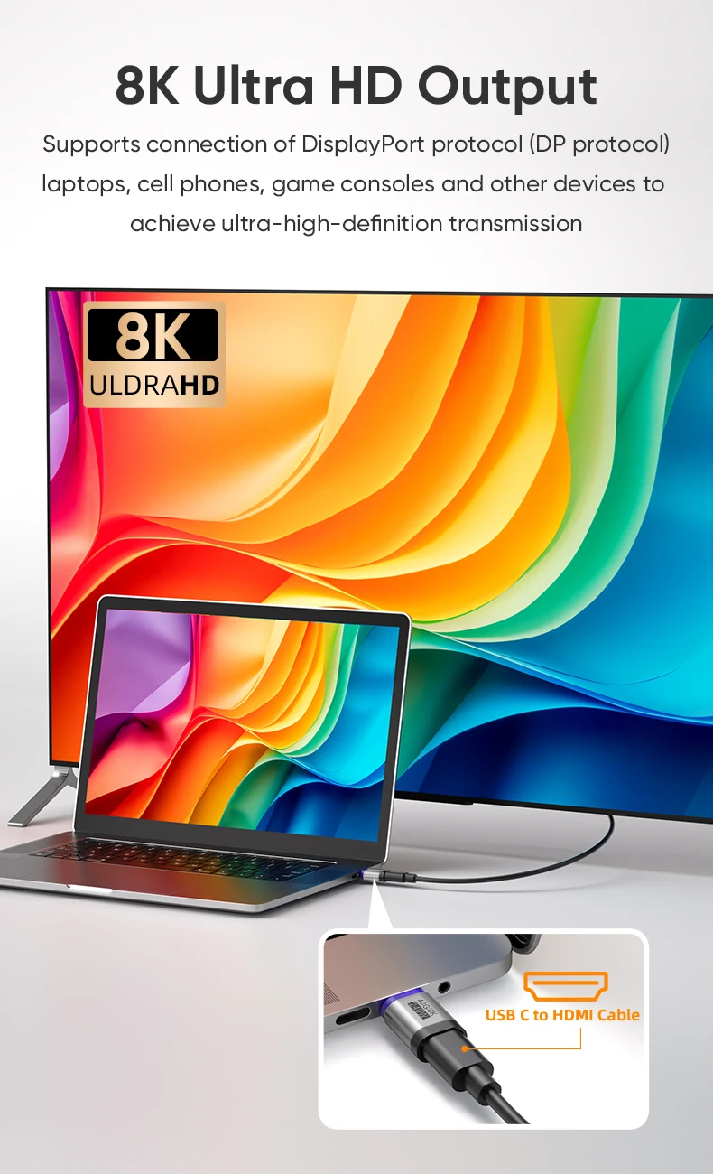 【8K Video Display USB C 】 Connect a USB C display up to 8K@60Hz 5K@60Hz or Dual 4K@60Hz. Enjoy watching videos in crisper and sharper resolution. USB C host should USB4,Thunderbolt 4 can be support 8K or 5K resolution; Thunderbolt 3 support max 5K or 4K resolution;but USB 3.1 type c DP Alt mode full function is only support 4K max. resolution.