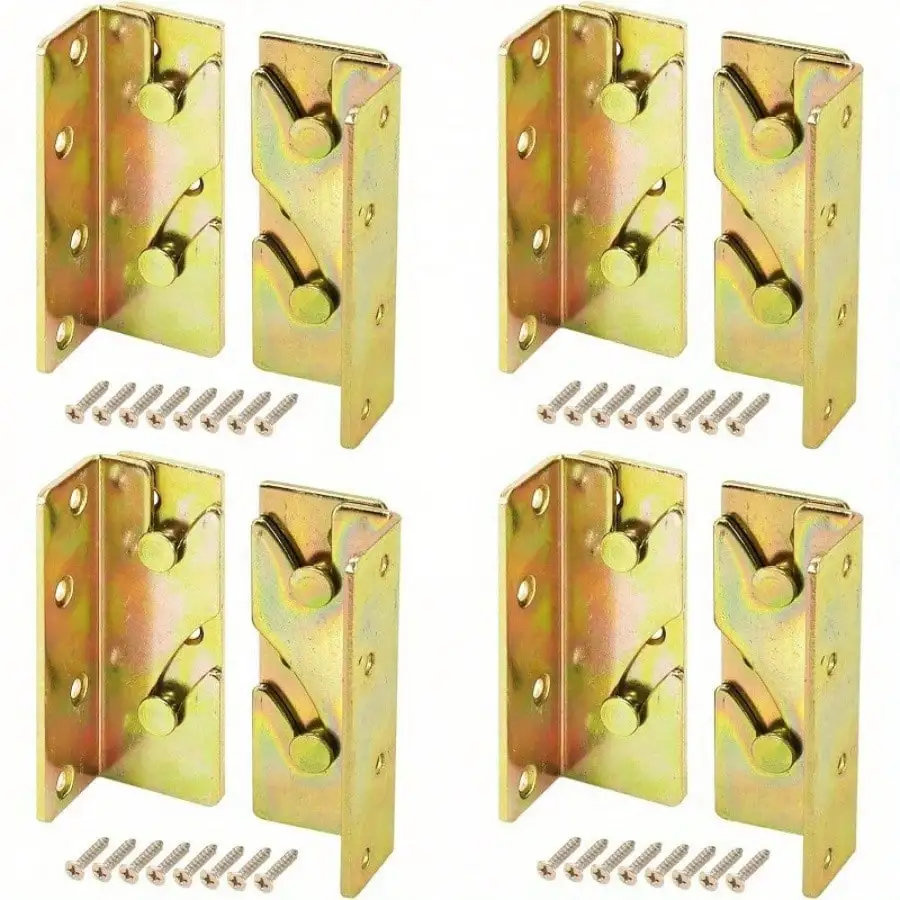 4 Sets Heavy Duty Bed Rail Brackets Non-Mortise Bed Frame Hardware Bed Rail Fittings Wooden Furniture Hinge Fixing Connectors