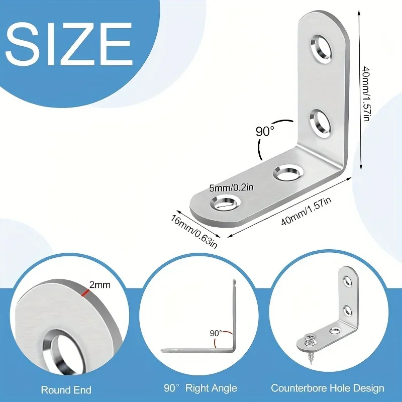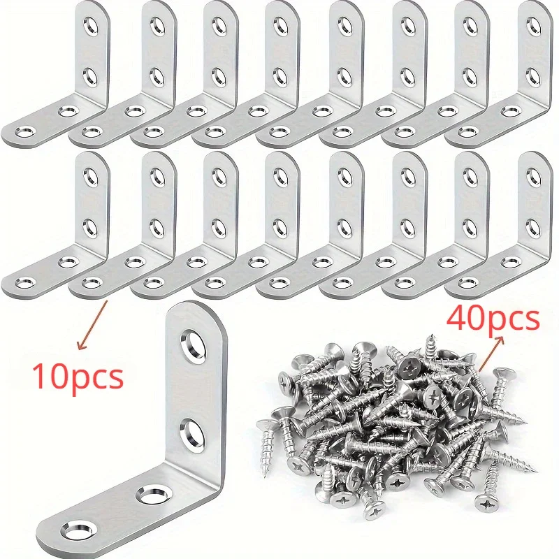 A Set Of 50pcs,Including 10pcs 90-Degree Right-Angle Brackets With 40screws,L-Shaped Bracket Hardware For Wooden Shelves,Chairs
